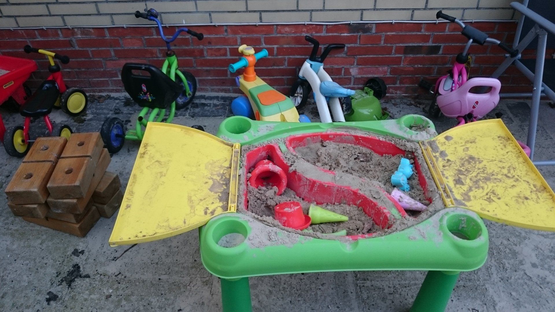 Der Garten lädt mit seinen ca. 70 qm ebenfalls zum ausgiebigen Spiel ein (eine Vergrößerung ist in Planung). Dort finden die Kinder eine große Sandkiste, Rutsche, Wippe, Klettergerüst, Nestschaukel, Trampolin, Matschtisch und Fahrzeuge.